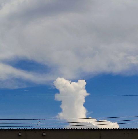 夏の忘れ形見の入道雲が、真っ直ぐに縦長に伸びています☁☀