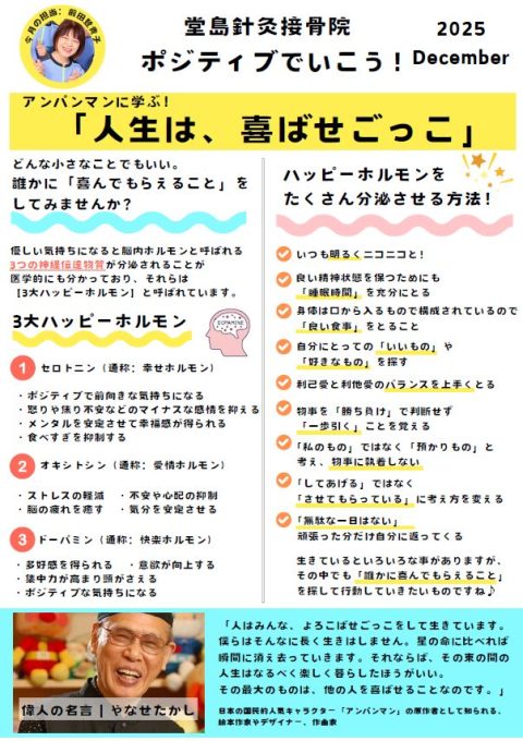 令和8年の堂島針灸接骨院のテーマは「食と健康について」。