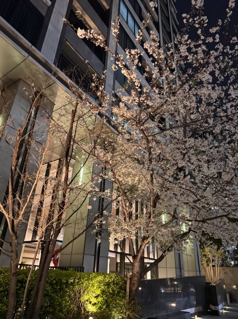 昼は賑やかな大都会に夜の静かな雰囲気の中で咲く桜は、昼間とはまた違った美しさがあり、とても癒されました。