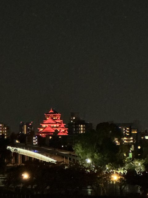 先日、帰宅途中に遠くに見える大阪城が真っ赤にライトアップされているのを見つけました‼️