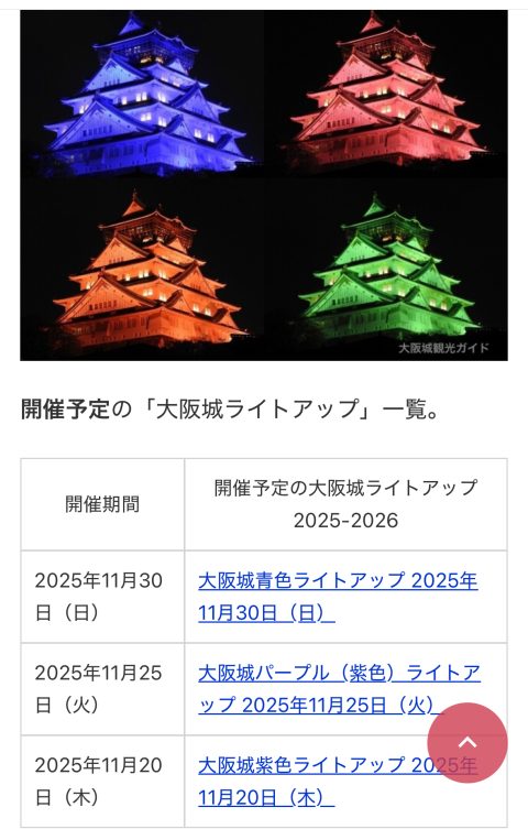 HTLV(ヒトT細胞白血病ウイルス)の普及啓発・感染予防対策の推進活動「世界HTLVデー」に協力し、大阪城天守閣を赤色にライトアップします。 (ネットより引用)