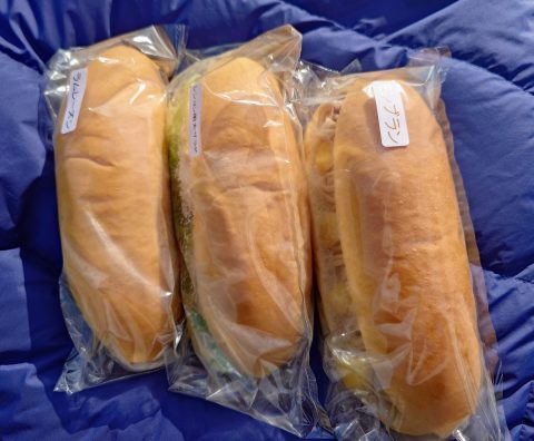 ふわふわのコッペパンの生地に、お肉や野菜、卵や甘い生クリームとフルーツなんかを挟んでくれているパンもあります。