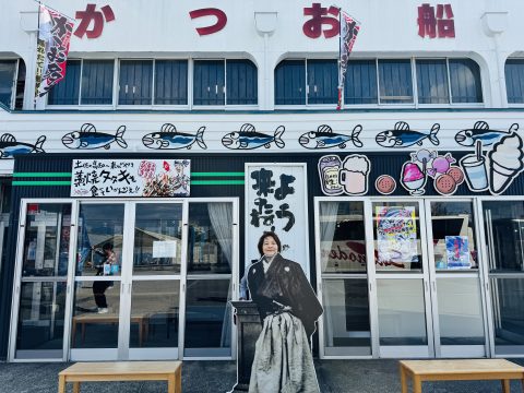 その後、友人夫妻がお仕事の合間に連れて行ってくれた 「かつお船」では、自分達でカツオのわら焼きが体験できます‼️😍