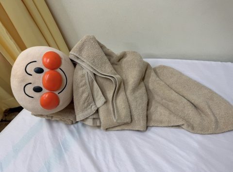 治療が終わった後…いつも大好きなアンパンマンにタオルをかけてくれます🥰