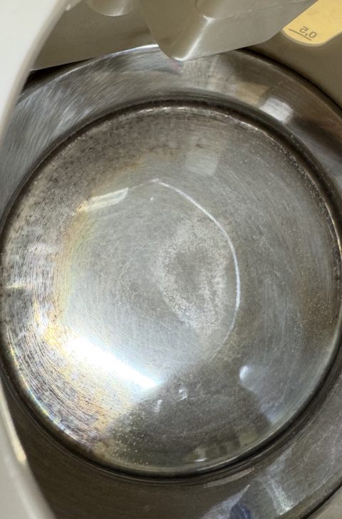 ふと見ると、ケトルの底が黒くなっていたのでよく洗ってみましたが、なかなか取れなくて💦