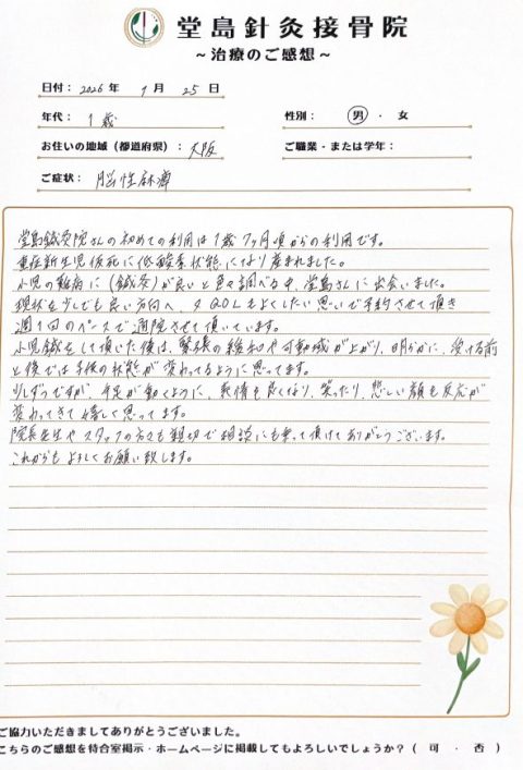 当院を選んでよかった!の声|脳性麻痺|1歳/男児/大阪府