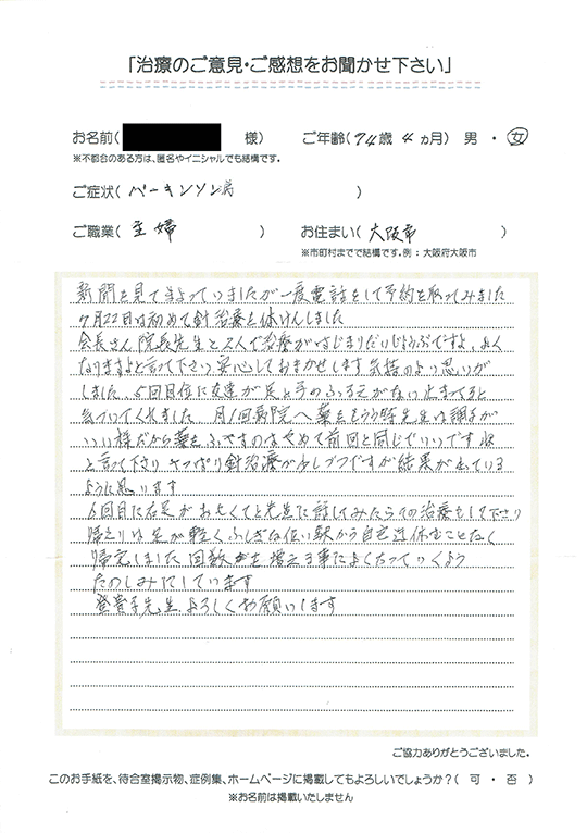 月1回病院へ薬をもらう時先生は調子がいい様だから薬をふやすのはやめて前回と同じでいいですね、と言って下さりやっぱり針治療が少しずつですが結果が出ているように思います。